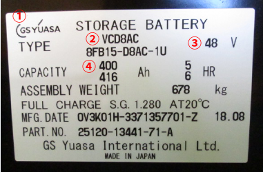 バッテリー型式 電圧/容量 放電率 メーカー リフト型式